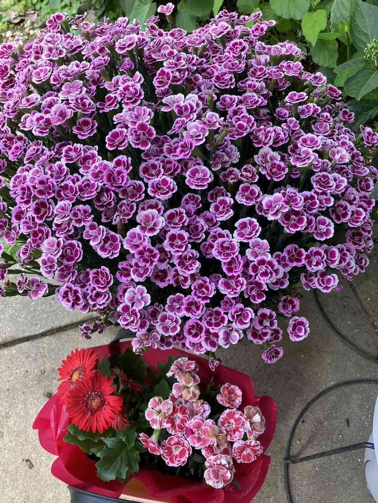 手前は母の日でもらってお花です。半額になってたよ😚とのこと笑