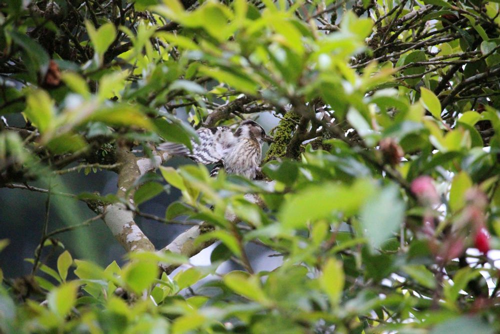 ①②は今朝庭木の山茶花に来てくれた『コゲラ』