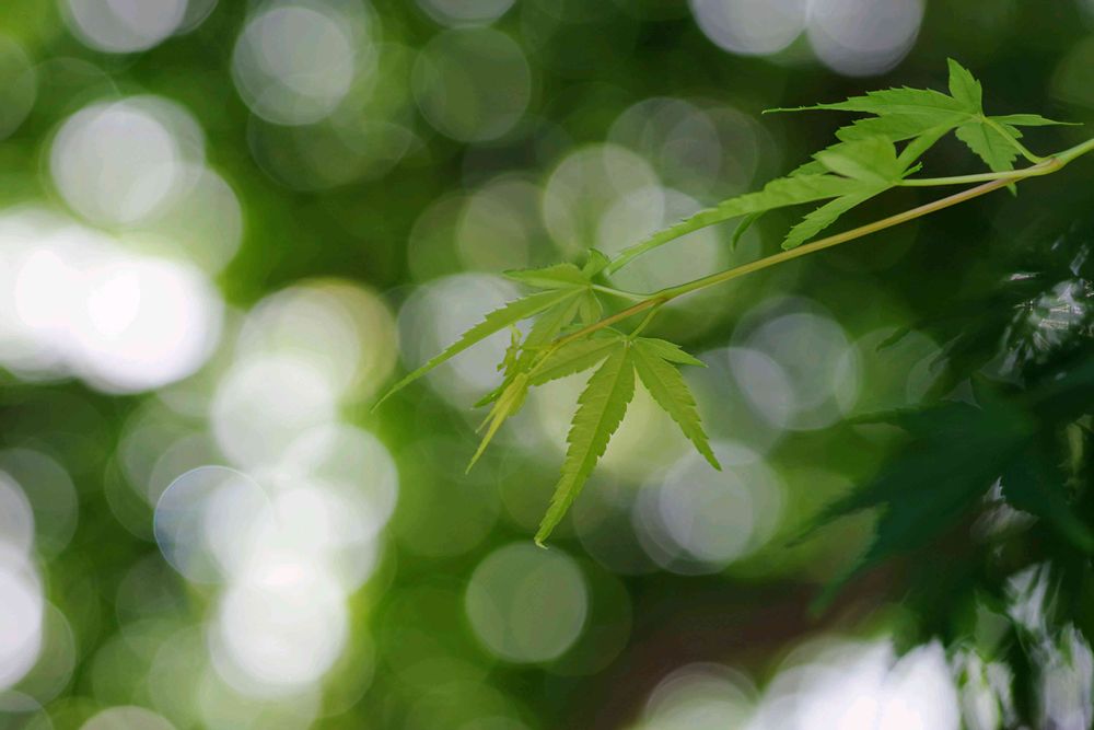 爽やかな新緑のもみじが腕をぴーんと伸ばしてます