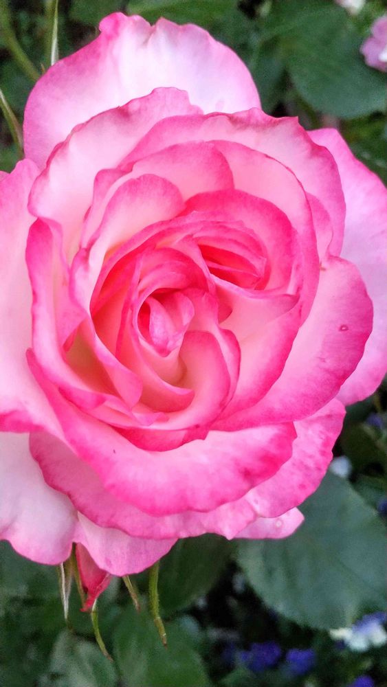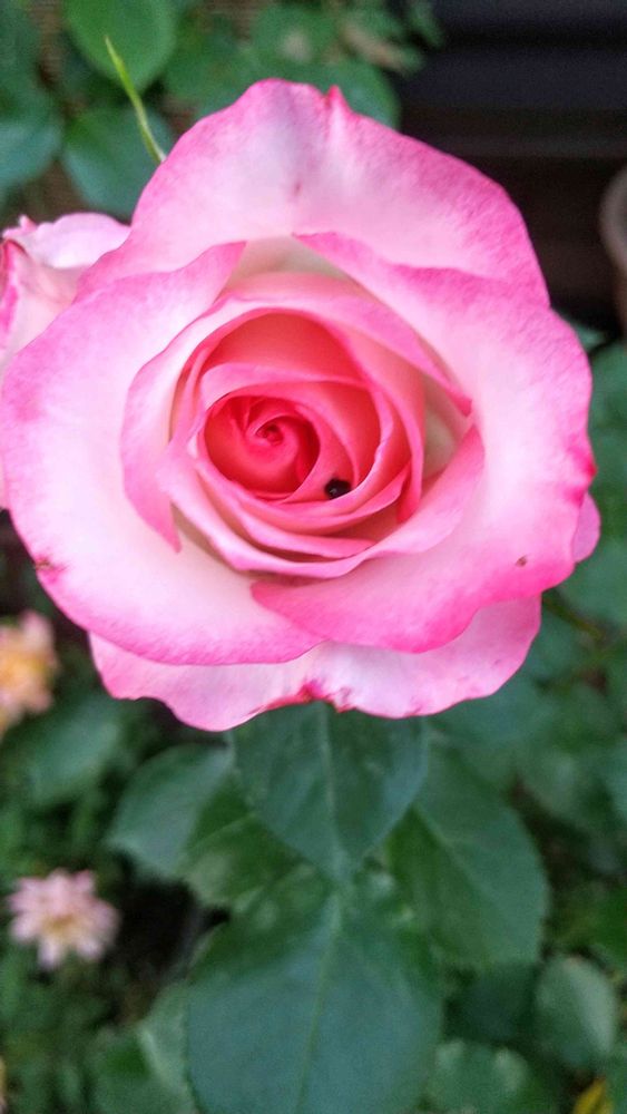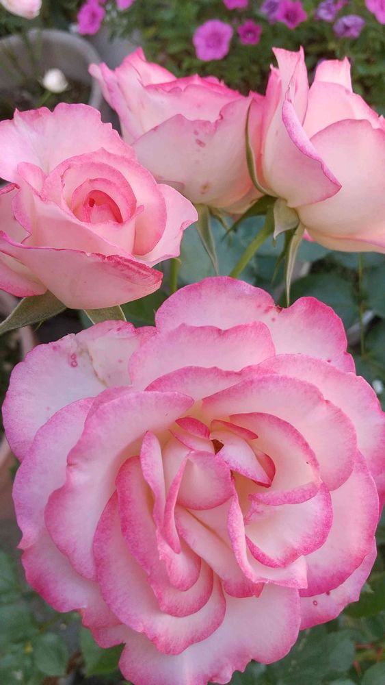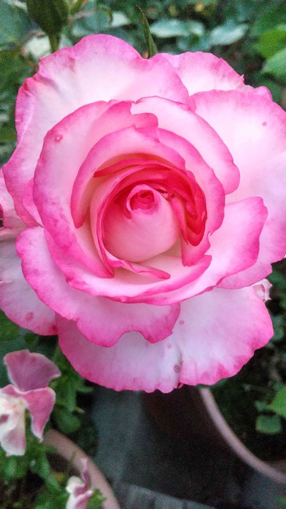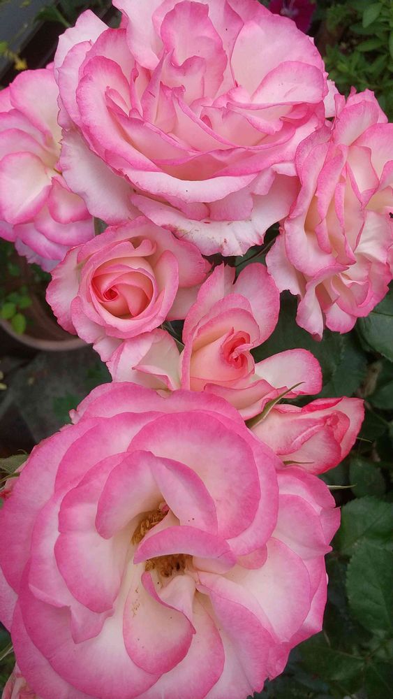 このバラを見つけた時は、白に縁取りピンク色が、とても気に入り、買って来ました。😄