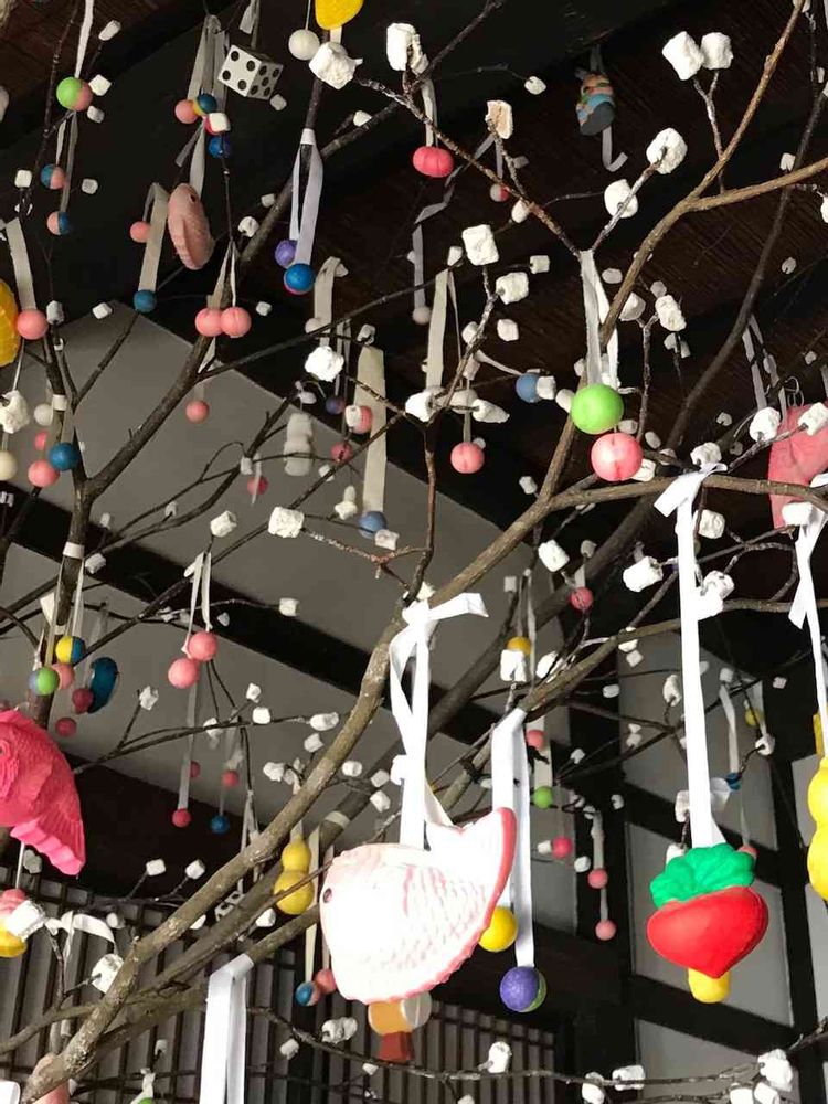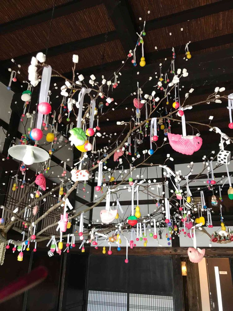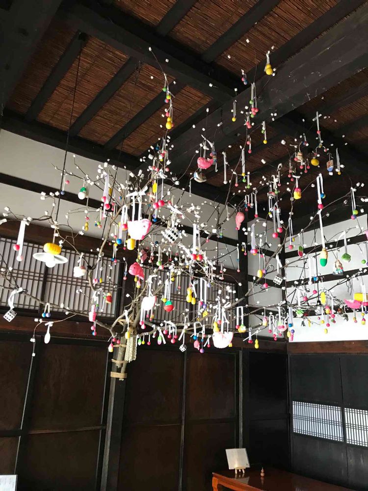 古民家の1階天井をぶち抜いたような高くて広い部屋に掲げられた団子の木飾りは圧巻でした✨✨