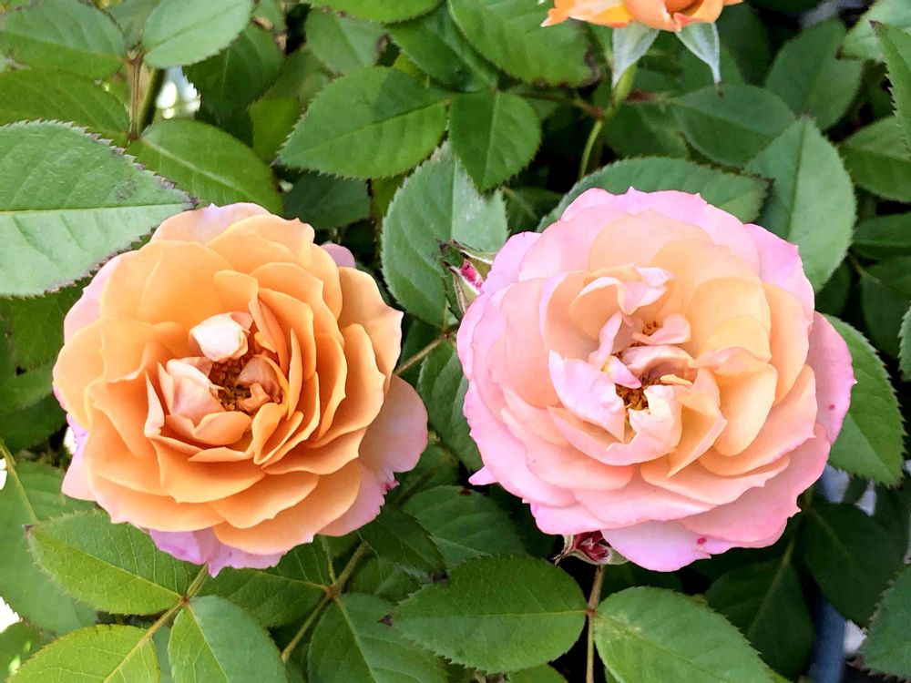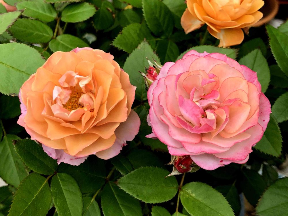 ①先日のミニバラ カーナハニーゴールドの色がオレンジからピンクに変わってきました♪♪♪