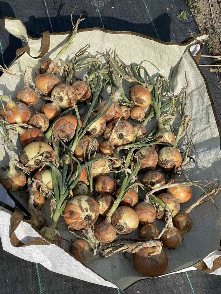 玉ねぎ🧅を収穫し、畑で少し乾かし根根切り☺️