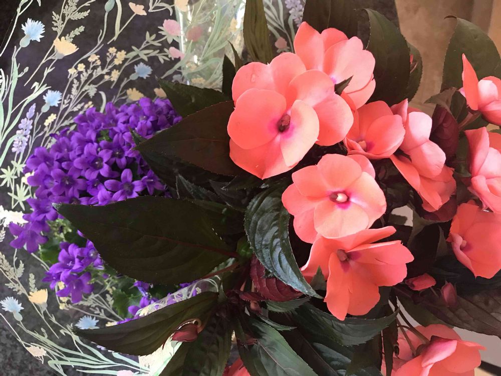 娘から貰っていた花達 カンパニュラの方は鉢に植え替え玄関際に インパティエンスはダイニングで楽しでます。☺️