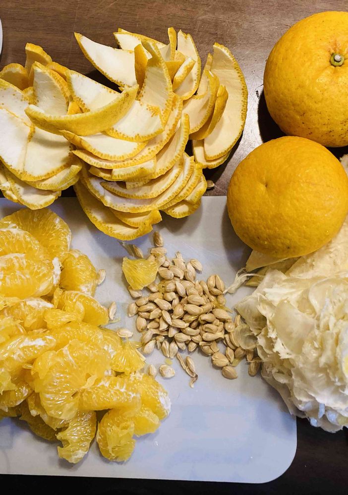 最近は家になった大粒金柑とグレープフルーツの中身だけを使って作りました