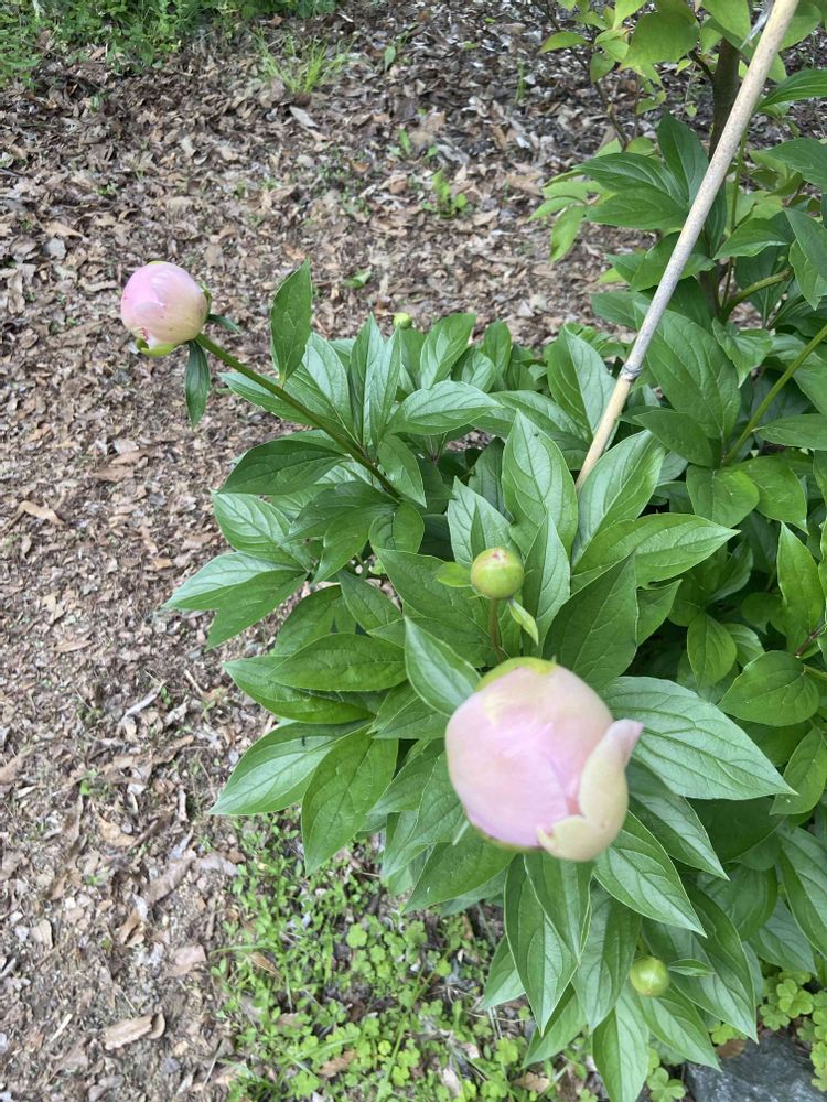 ②③シャクヤク雨の中咲いたので、倒れてしまいそうだったけどやっとお日様の中綺麗にお目見え