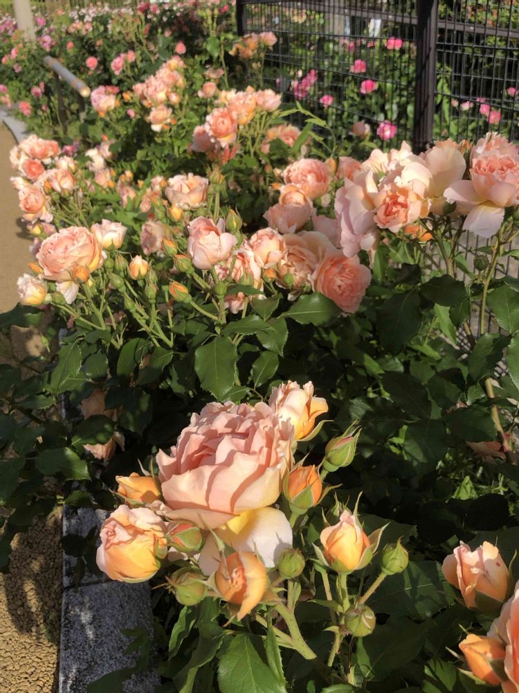 茨木市の若園バラ公園にて、日本🇯🇵製のアプリコット色のバラ「杏(あん)」をパチリ!📸🧡🌿🌞✌️