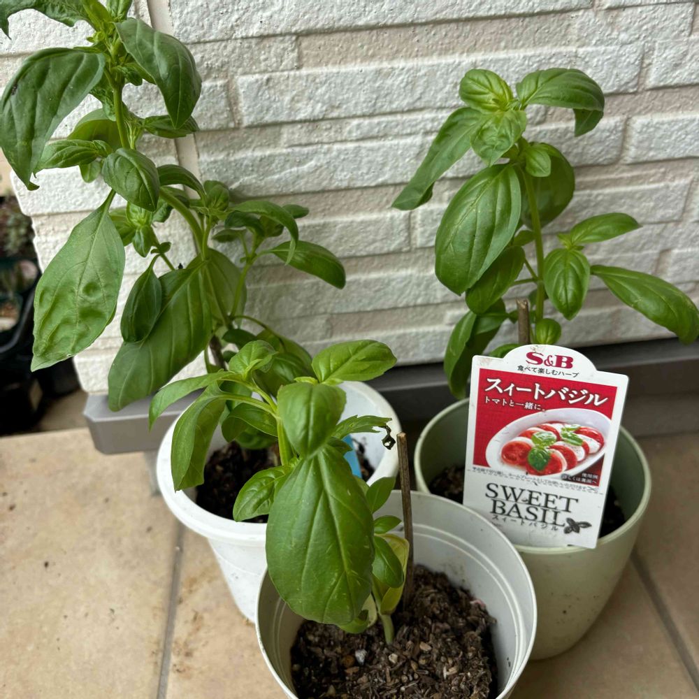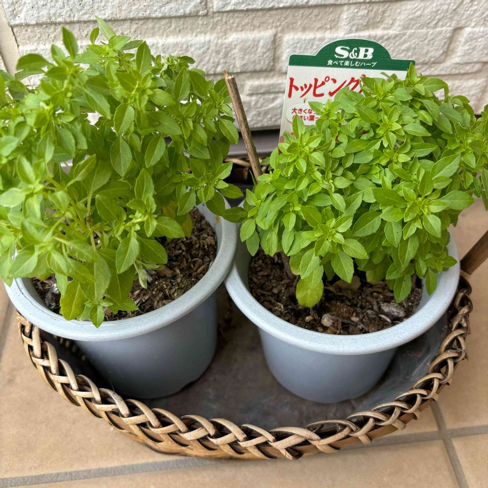 4月20日にSBさんから頂いたトッピングバジルとスイートバジルが大きくなり収穫しました