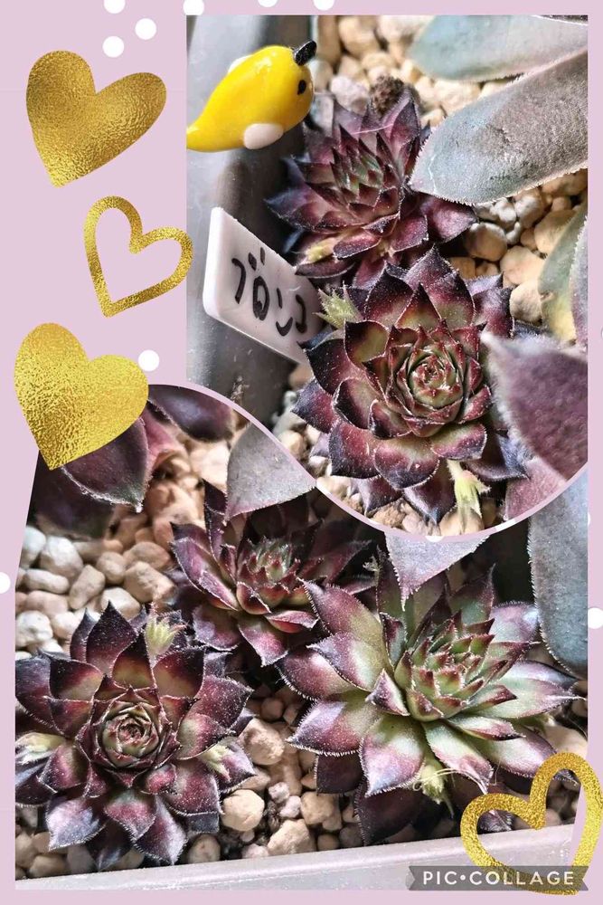 ②センペルビウムのRosa MädchenとHavana(ハバナ)、ナギ(上)&わさび(下)、折り紙のバラとテントウムシ🐞(頭を引っ張ると羽がパタパタ動くよ)