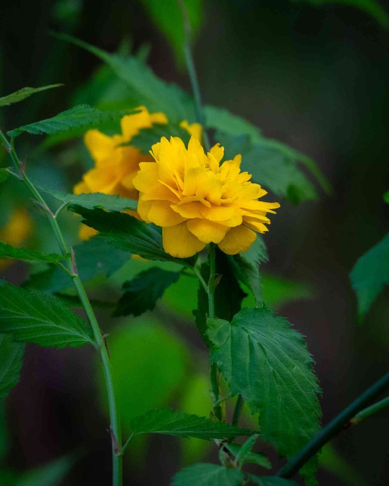 本日の花。かなり前の撮影で失礼します。戦没者慰霊の園で、八重のヤマブキがしっとりと咲いていました。2024.04.10.撮影