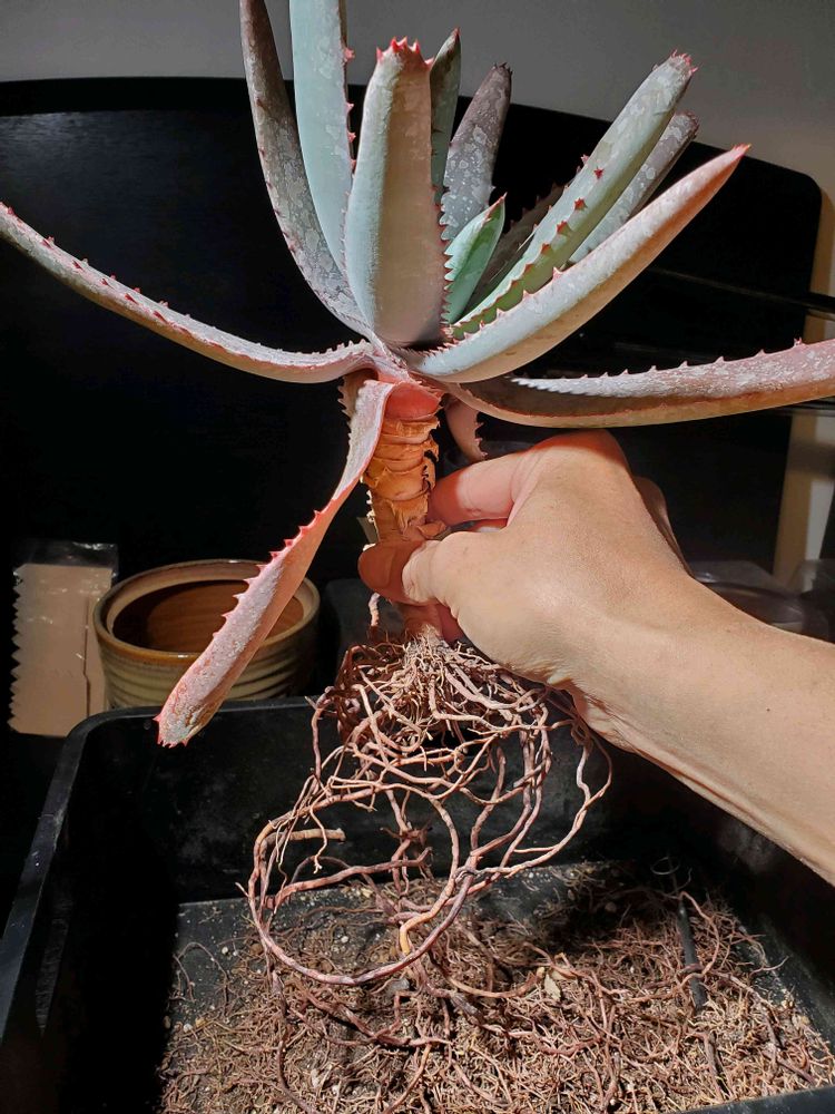 30分かけて絡まった巻き根をほぐして、傷んだ根を取り除き、ストレートヘアにしてから植え替えました。