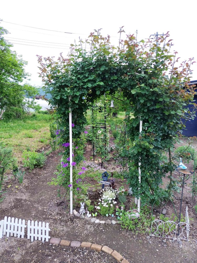 アーチに絡ませて、一緒に咲かせたかったクレマチス💜✨が次々に咲いています😂