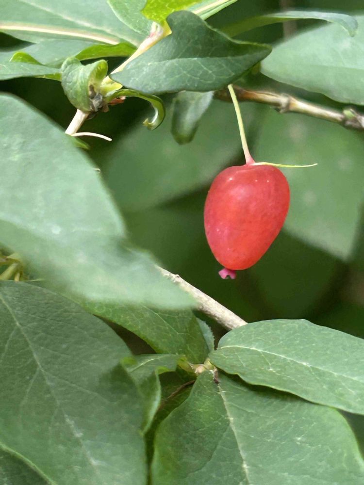 春もまだ浅い頃1番に花を見せてくれたウグイスカグラに赤い実がなっていました