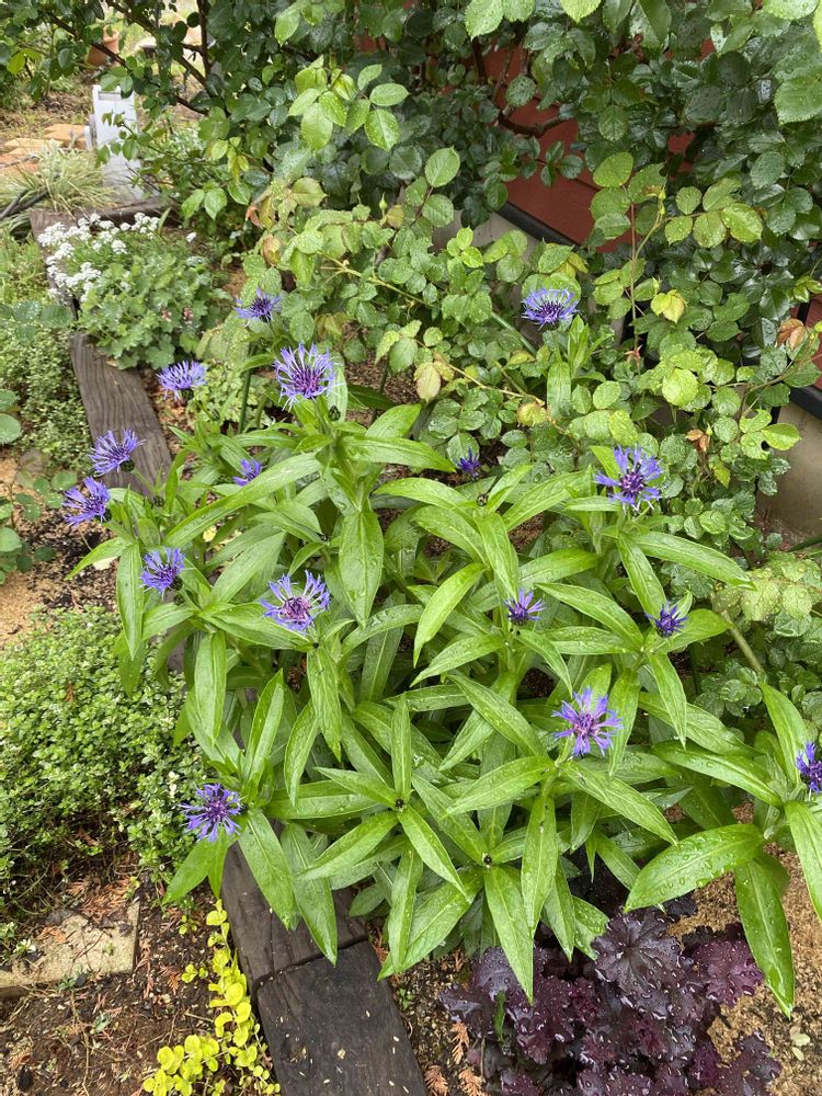 昨年植えた宿根草、留守の間にぐんぐん伸びて花が咲いてました。