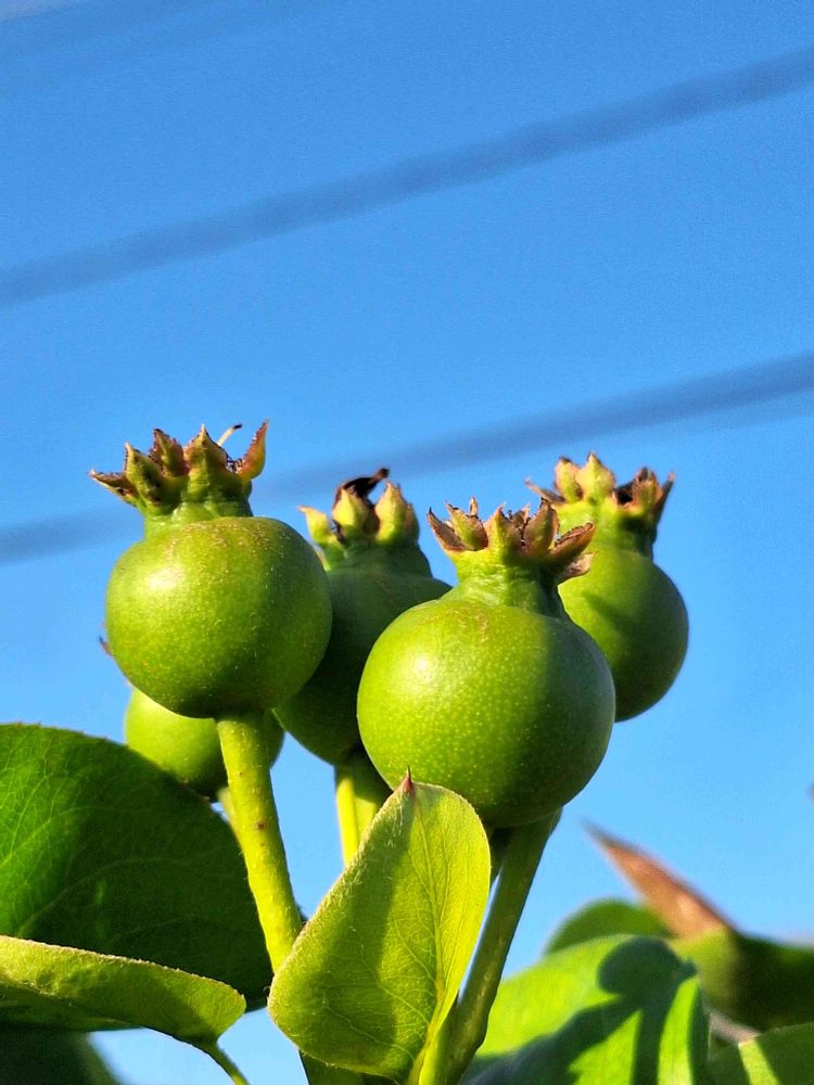 梨も林檎も最初は上向きに実がついているんですね〜😆