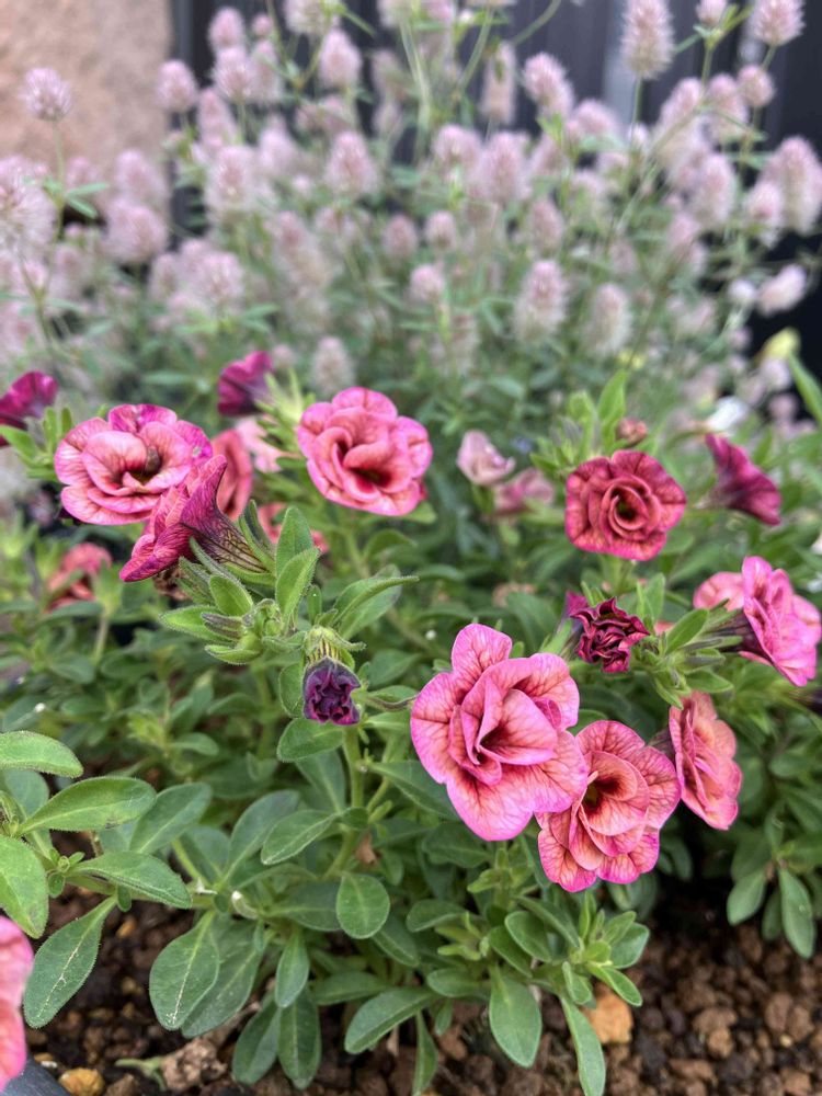 アンティーク色のカリブラコア2種とトリフォリウムバニーズの寄せ植え♡