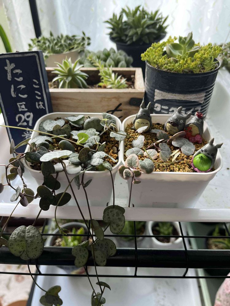 ①倍増計画で✂️して刺しています。たまさんからのハートカズラと班入りハートカズラです。トトロたちはグラン・マから。