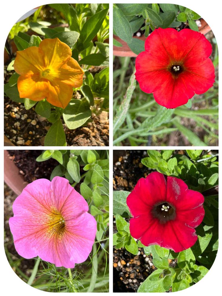 どれが ペチュニア で どれが カリブラコア かは分からないけど良く似ていますね😃