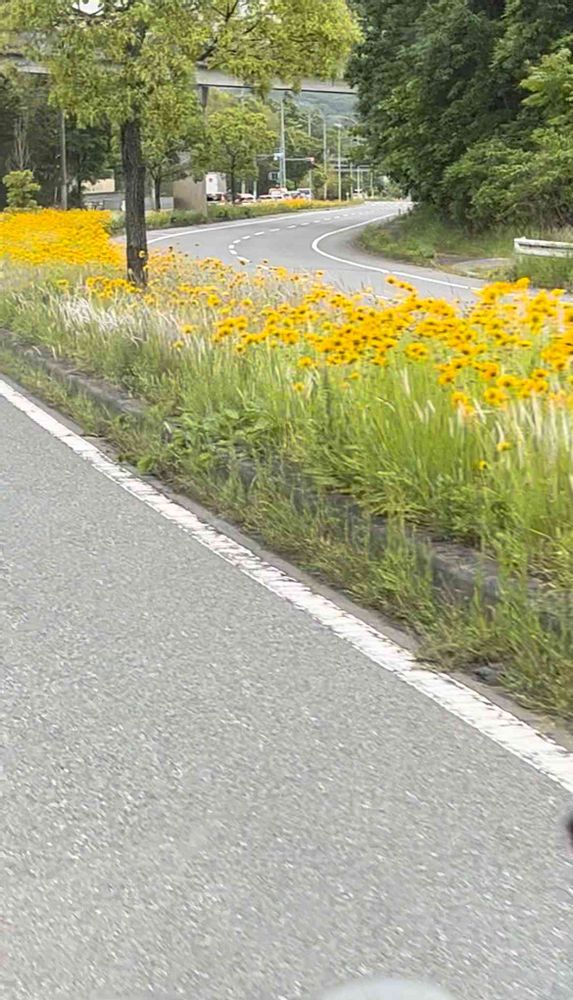 県道の分離帯黄色い花がずーっと続く 綺麗だけどちょっと困りものなんだってね…