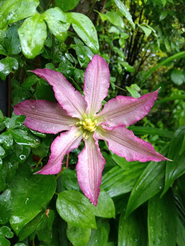 雨の中のクレマチス フラウ・スザンネ🌿✨