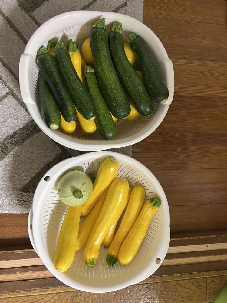 さん、こんばんわ☪️〜ズッキーニ大好き❤で~羨ましい限りです😍〜たてに薄切りにしてスープで煮浸しにするのが、私のメニューで、冷たくして、暑い盛の楽しみデス(。•̀ᴗ-)✧ーどんな調理して見えるのでしょう🤗