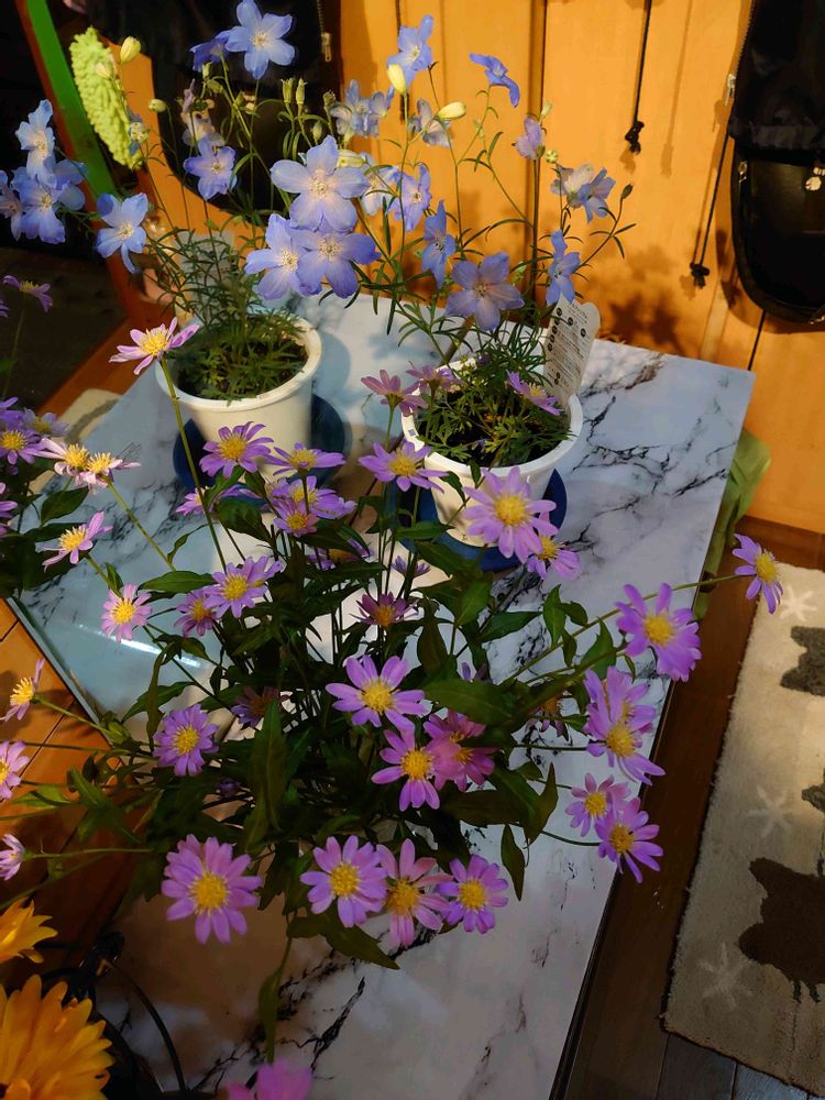 ♡デルフィニウムと実家の庭に咲いていたミヤコワスレ♡