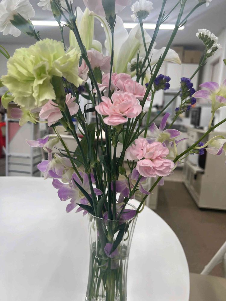 今日のお花は職員さんが娘さんから送られた母の日のカーネーションのお裾分け💐、雪の下の花…。