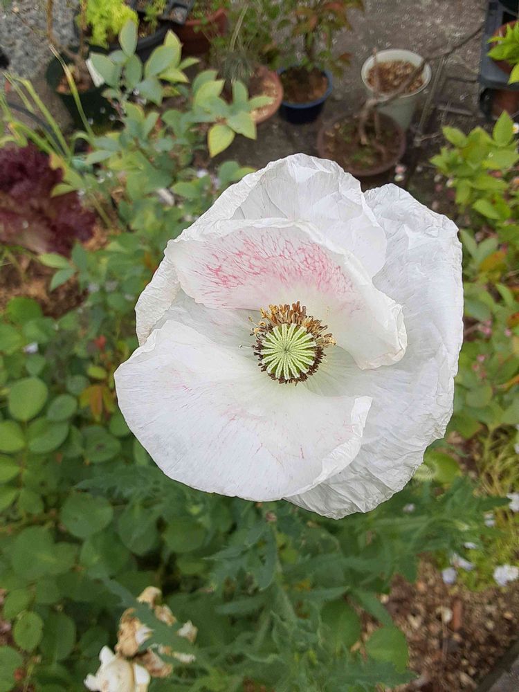 お隣の白い大輪のポピー○、目👁️を奪われました💕