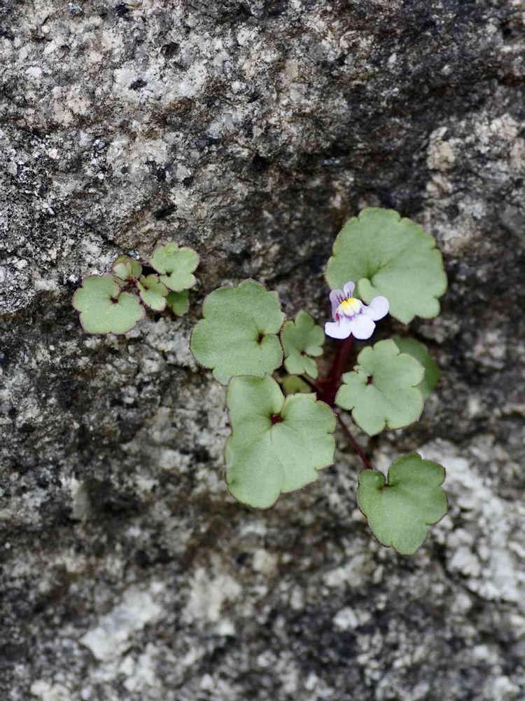 石積みの隙間にかろうじて生えてきたんです。お隣から種が飛んで来たんでしょう。😁