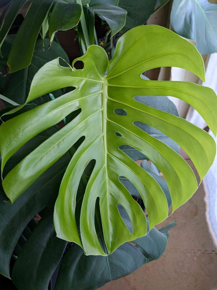 モンステラさん葉っぱの切れこみと中の穴が素敵😍