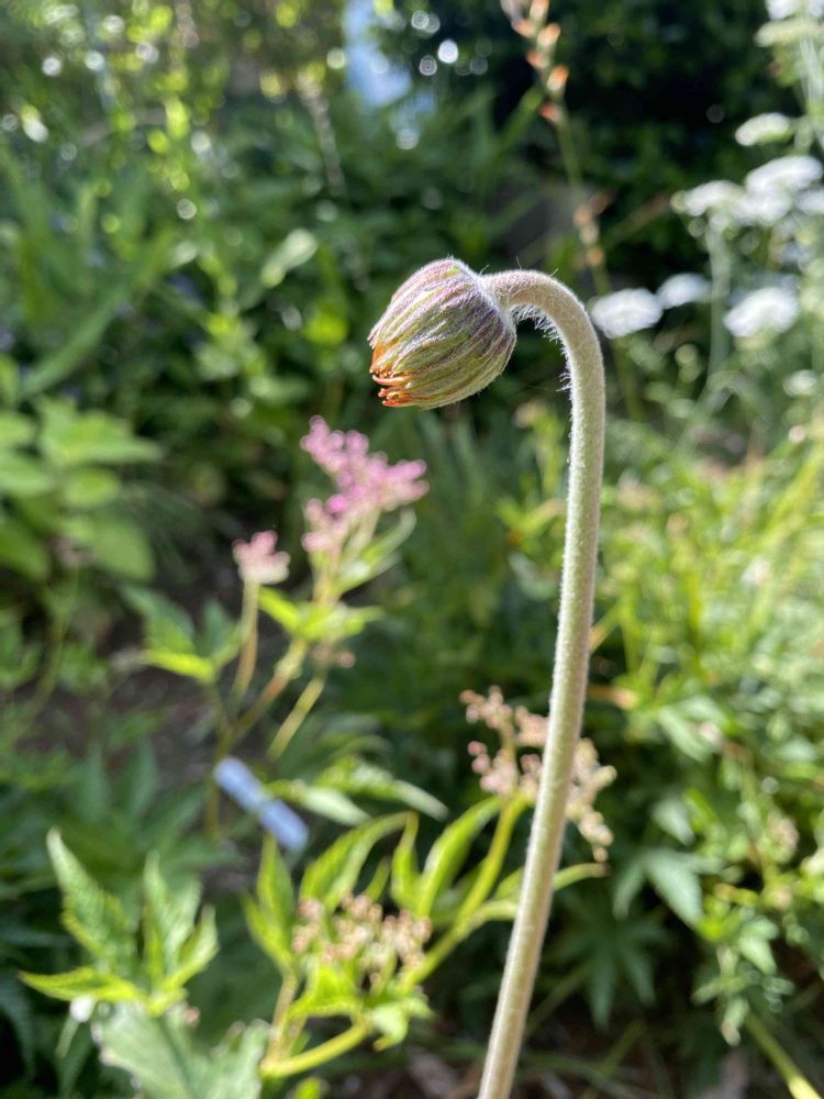 フォロワーさん達のお庭ではもう原種系ガーベラ・ヤメソニーが咲き始めてますが、実家の庭では、まだ蕾です。