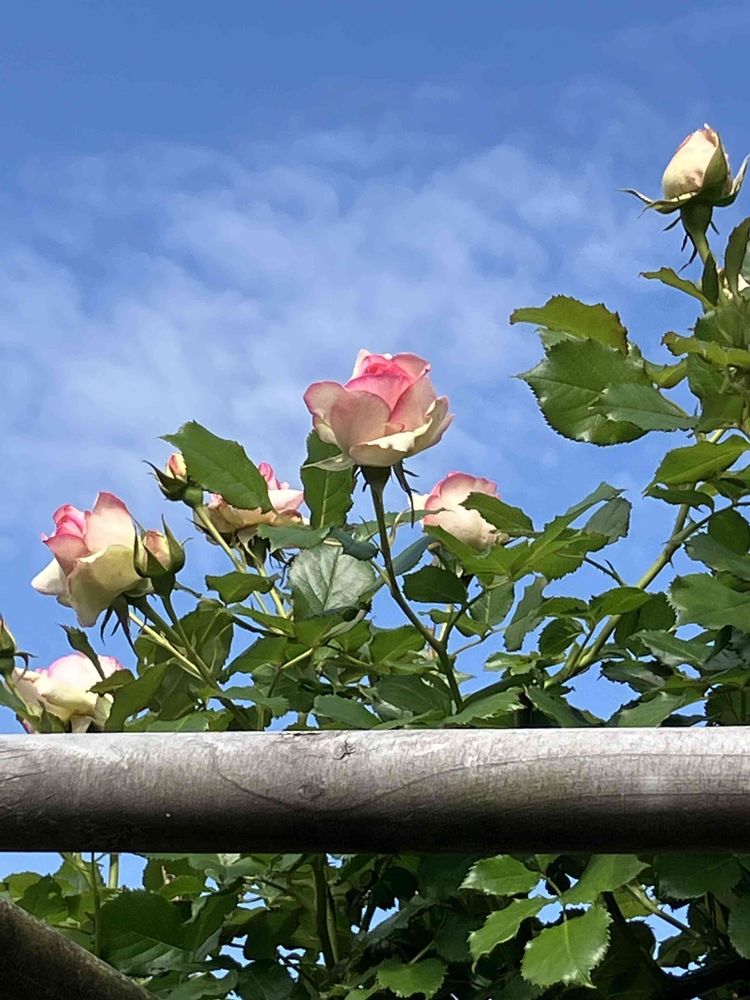青空とピエールさんのクリーム&ピンクがよく映えています。