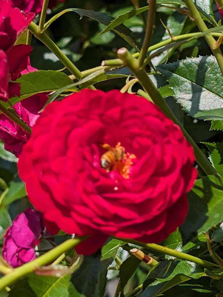 蜂が道を吸っているバラ