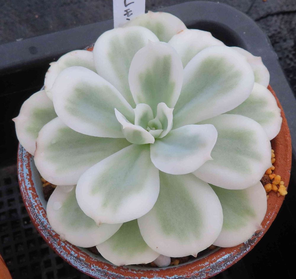 先月ギュッと締まった姿を投稿したレモンローズ錦が,たったひと月でこれ以上ないくらい開いてしまった。ただ,白さが増したせいか,妙な迫力が出てきた。