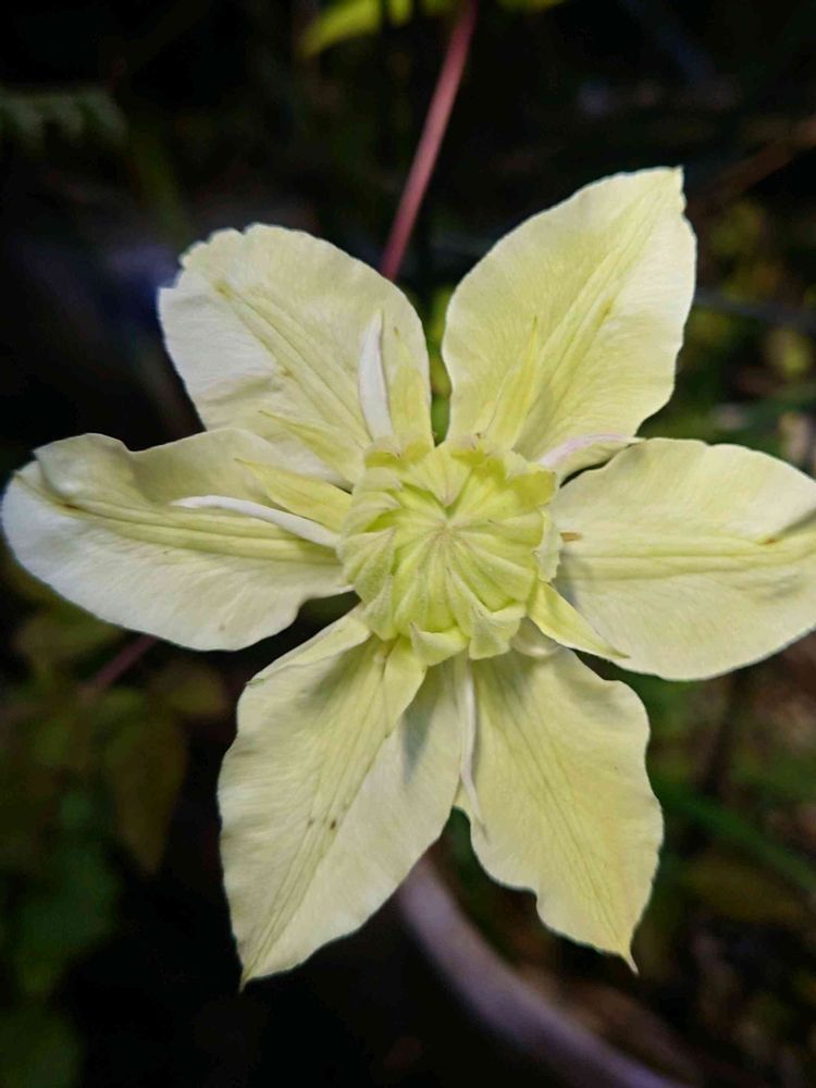 咲きかけのクレマチス白万重さん💚