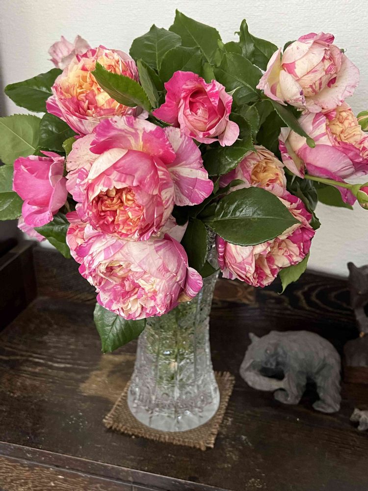 バラがピークを過ぎると(特につるやシュラブ)すぐに切ってしまいたい病の私はご近所さんにビシバシ切って無理やり押し付けているので、その方々はバラがいかにすぐゴミと化すかはよーくご存知😅