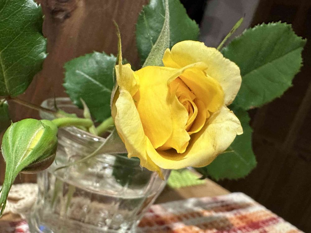 ③④せっかく咲いたのに折れてしまったので、台所のカウンターに飾りました🟡✨