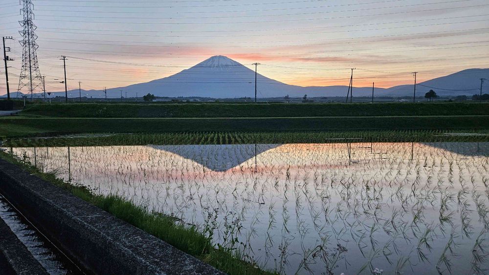 今回は田んぼに水が張っていたり風も無かったり、夕焼けが綺麗だったり…なんて良いタイミング❣️