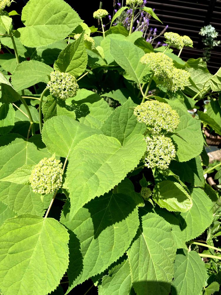挿し木苗を鉢植えに…1年育てて花壇に植え替え…3年目の今年は大株になって沢山蕾をつけたアナベル🤗