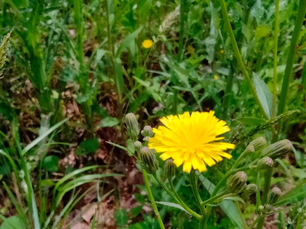 また別の黄色い花、ブタナかと思ったのですがどこか違うような?コウゾリナ?