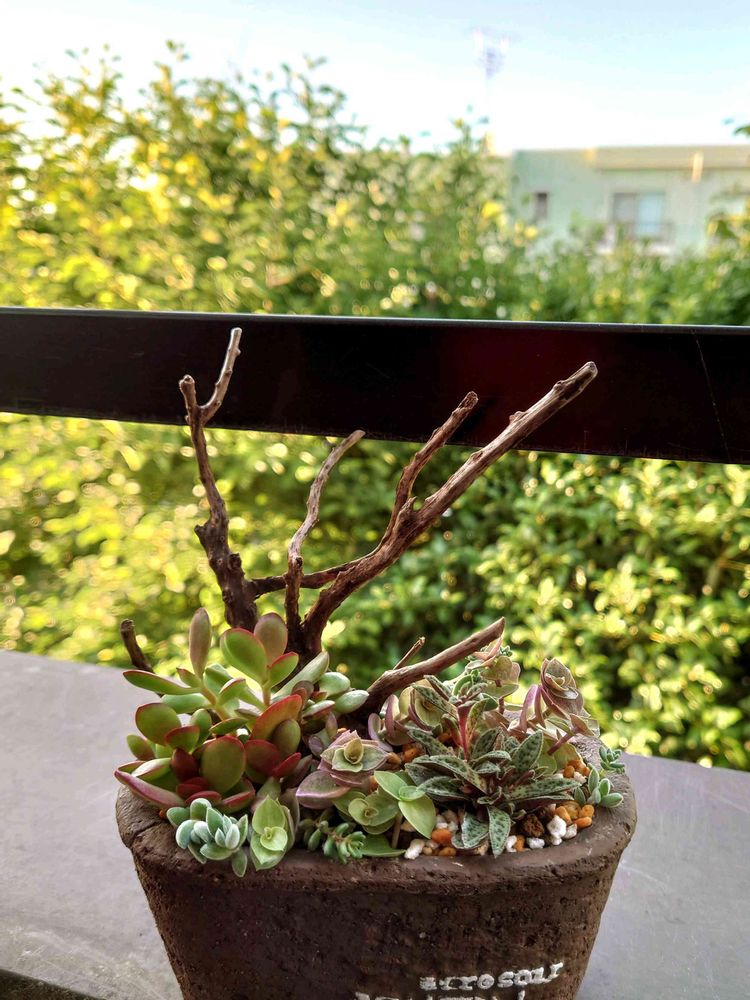 流木添えの寄せ植えって斬新➰😆🎶