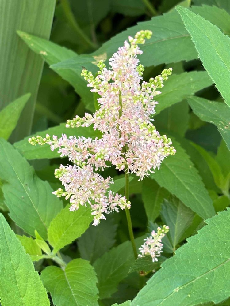 おはようございます😊アスチルベが、背の高くなったアナベルの後ろでひっそり咲いていました✨