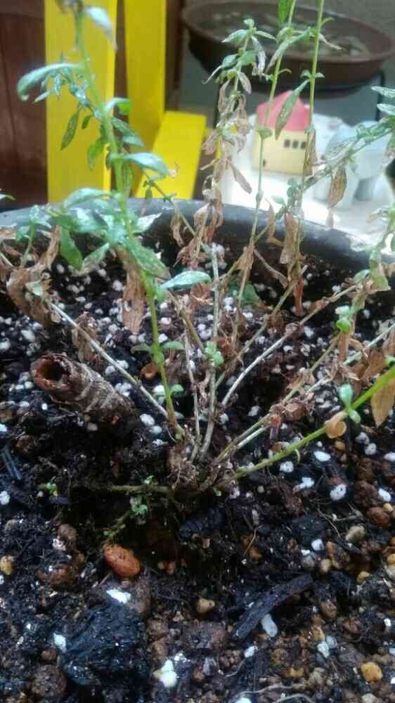 どこからか飛んできたエリゲロンが枯れてきているーーー😱😱😱😱😱でもでも、下からは新芽も見えてきている😂😂😂😂😂こんな状態から復活できるんでしょうか?どなたか助けてください!管理方法教えてください!
