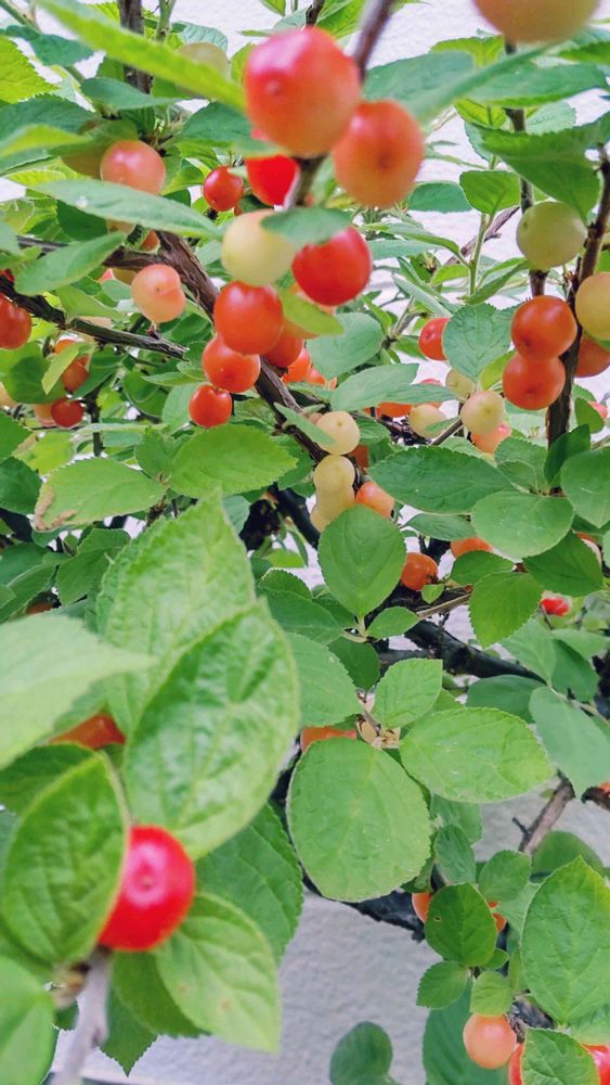 ワァ!きれいな色のユスラウメがなりましたね🔴🟠🟡