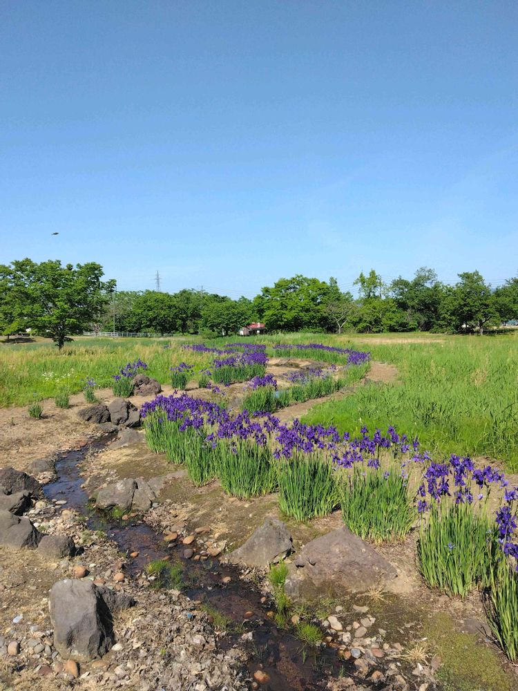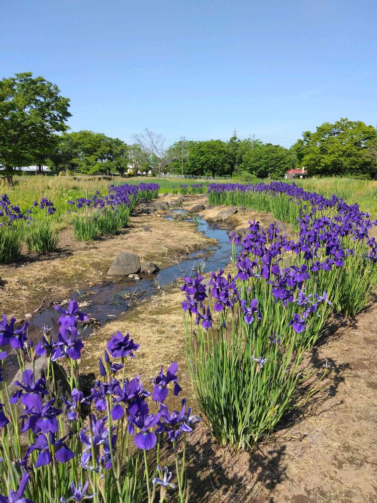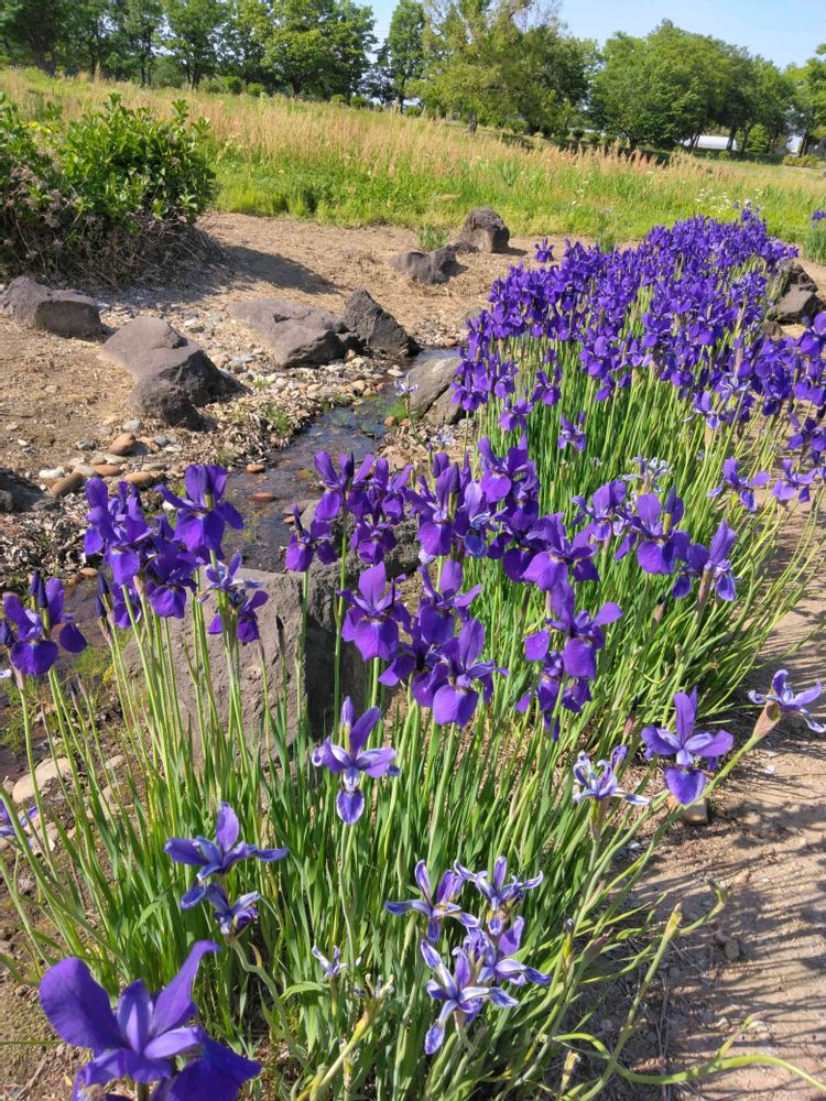 小川沿いに、アヤメの小道が素敵な風景でした🥰✨