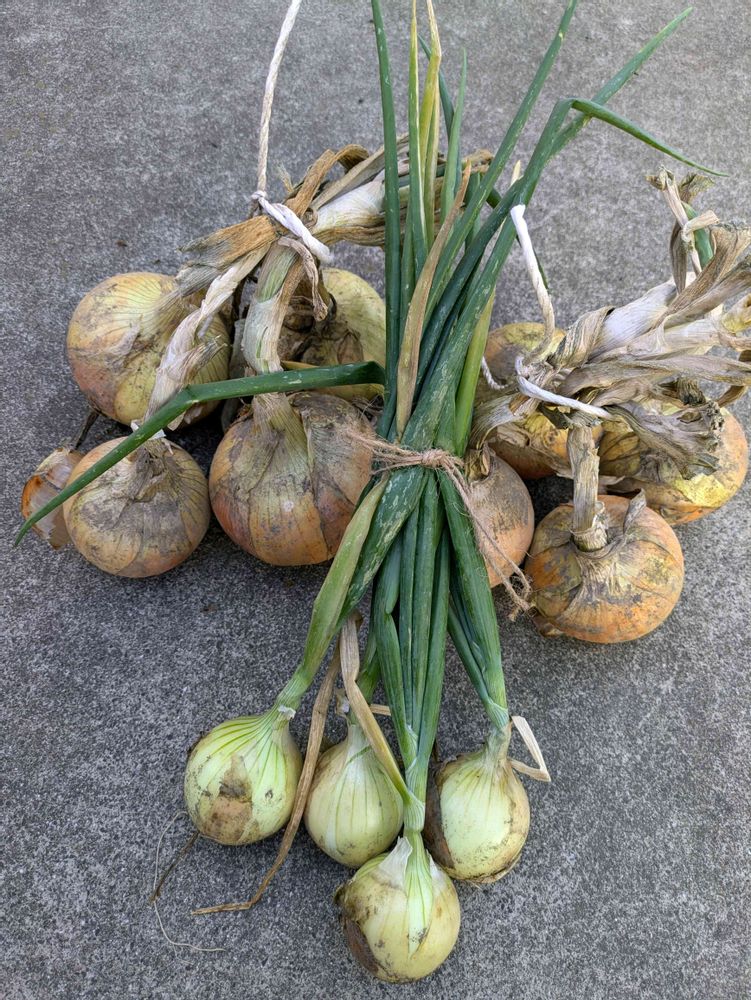 まだ葉っぱ元気てしたが収穫しちゃいました😉野良人さんの玉ねぎも小さいなら何だかホッとしてます👯(笑)