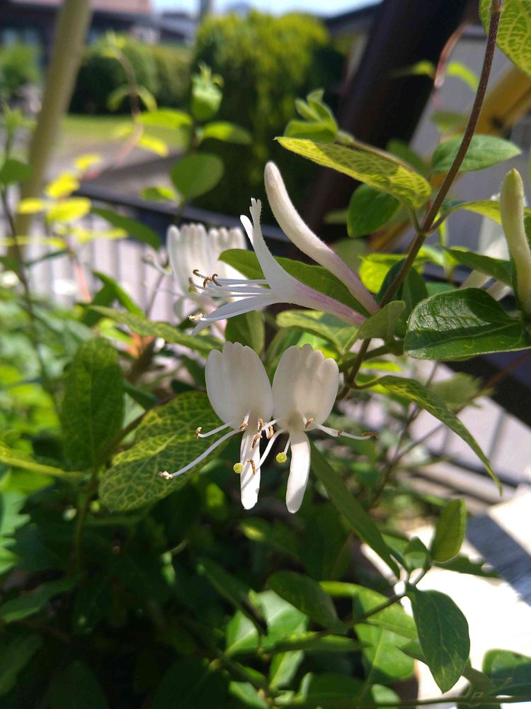 スイカズラ🤍今朝咲いていてビックリ(˶ˆ꒳ˆ˵)🤍