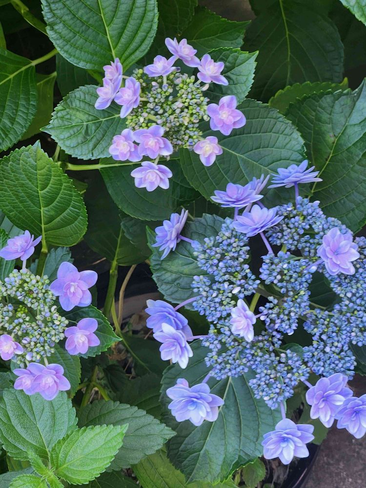 職場(5/13投稿)と同じダンスパーティですが、花色がブルー系です。酸性土なんでしょうか?