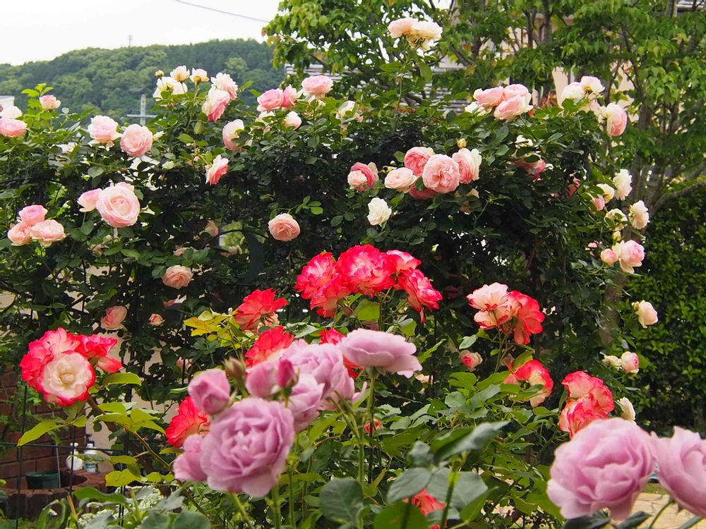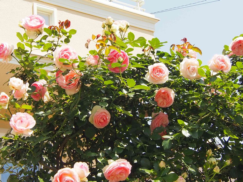 昨日は松尾園芸さん、一昨日はびわ湖大津館の隣のバラ園に行きました。どちらもピエールドロンサールさまが仕立てられ目を奪われました。