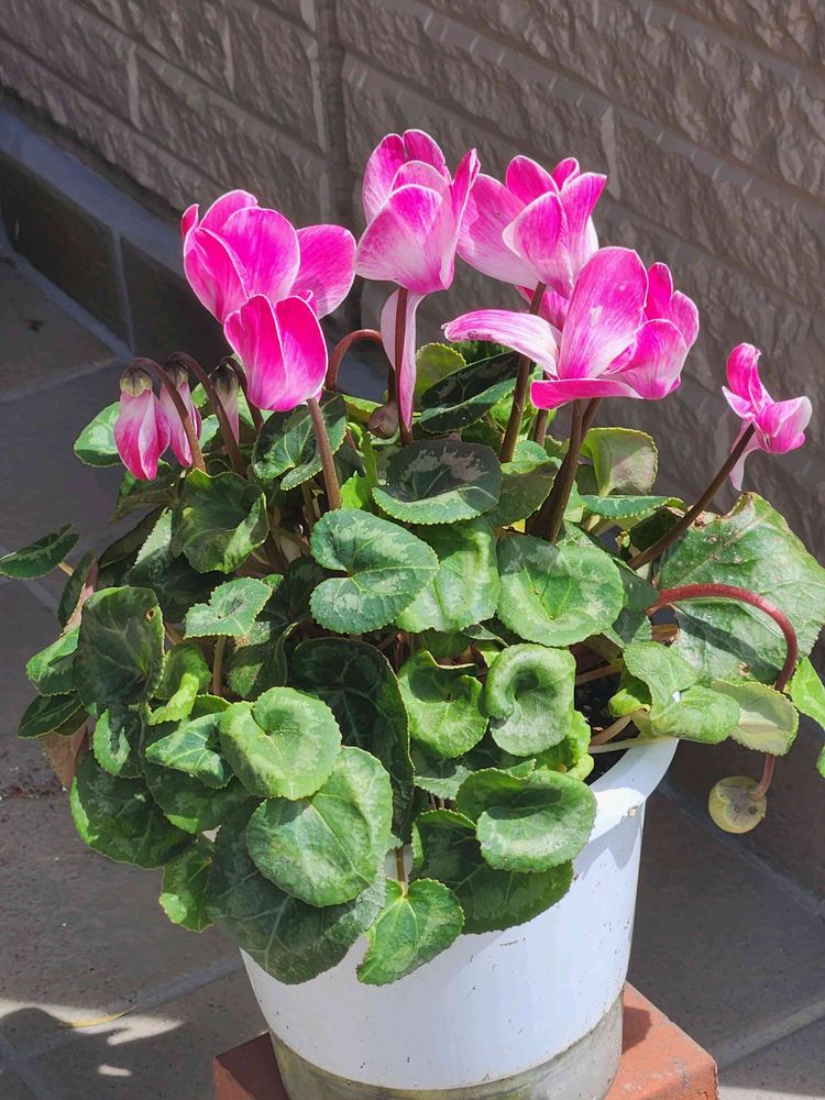 先日の投稿pic、ハナキリンの後ろで咲いていたシクラメン、次々に咲いてきました。2年目です✨️